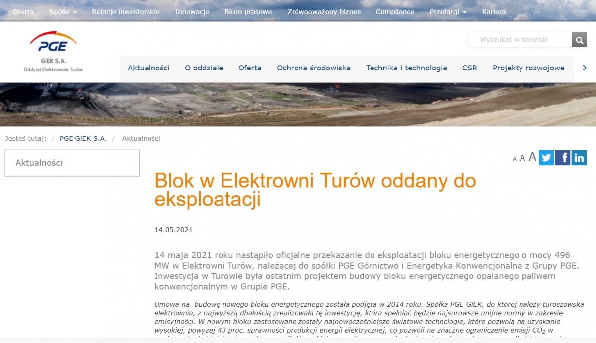 Więcej można przeczytać na oficjalnej stronie PGE: https://elturow.pgegiek.pl/Aktualnosci/blok-w-elektrowni-turow-oddany-do-eksploatacji