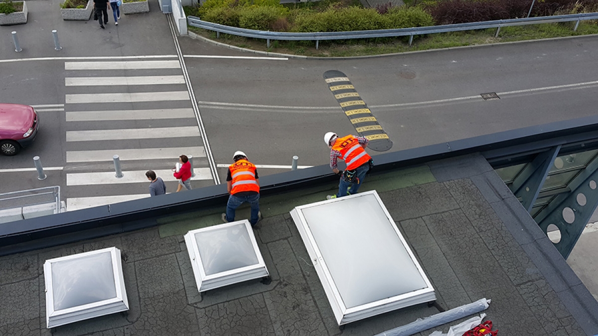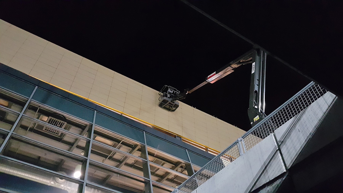 Dla poprawy bezpieczeństwa wykonaliśmy instalację i zamontowaliśmy oprawy oświetlenia awaryjnego na drzwiach ewakuacyjnych .