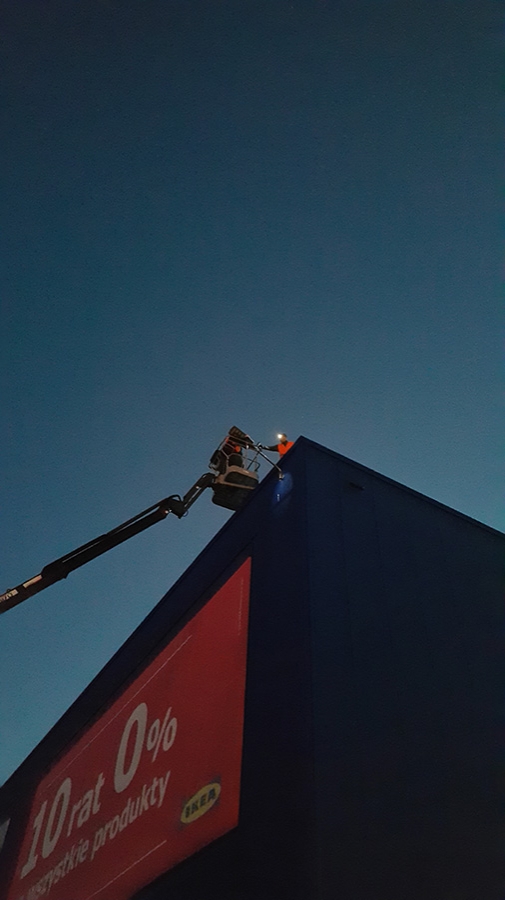 Zlecenie nasze obejmowało także doświetlenie ulic Szwedzkiej i Roździeńskiego od strony CH „AGATA”. Doświetlenie to wykonaliśmy z elewacji magazynu odbioru towaru CH IKEA.