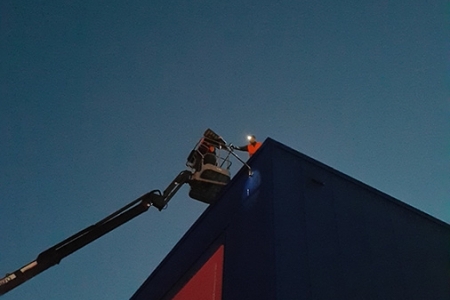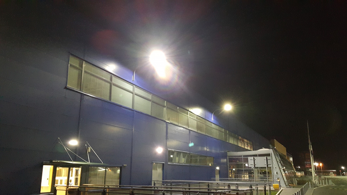 W ramach zlecenia wymieniono wszystkie oprawy drogowe, oświetlenie elewacyjne, oprawy obrysowe oraz postawiono dwa słupy drogowe celem oświetlenia przejścia dla pieszych oraz jezdni. W zakresie naszym wykonaliśmy również modernizację oświetlenia na biurach jak i w pomieszczeniach sanitarnych.
