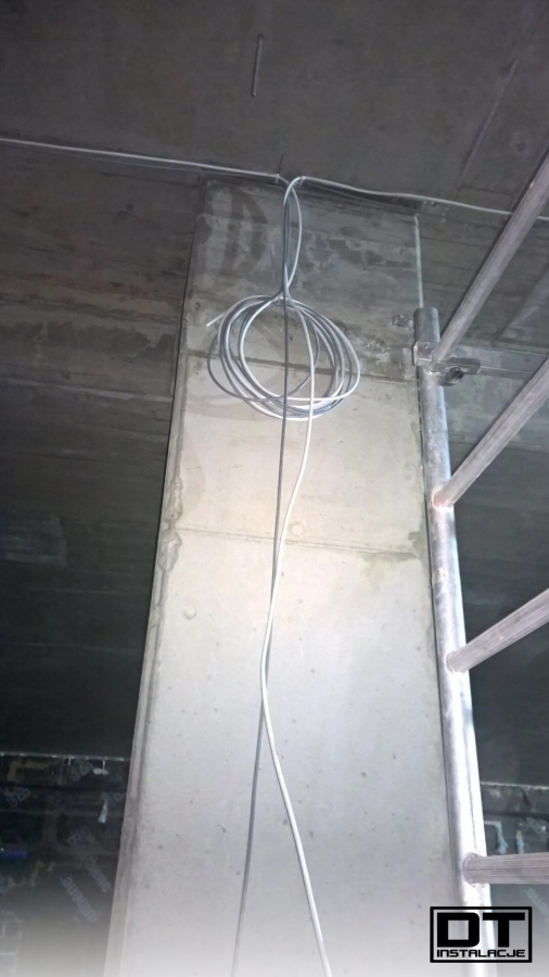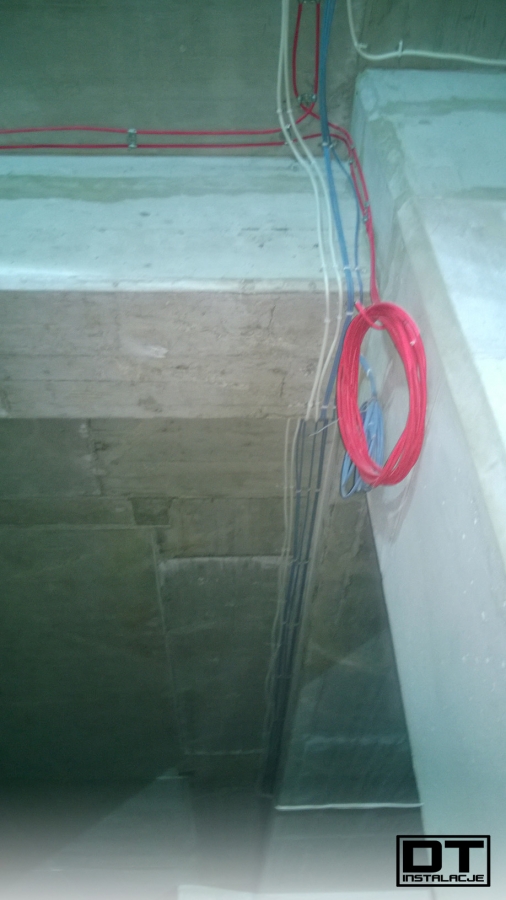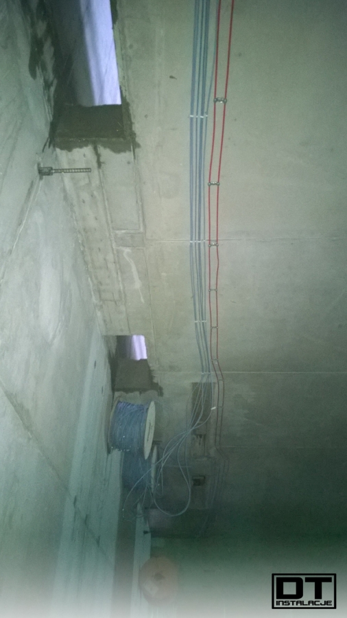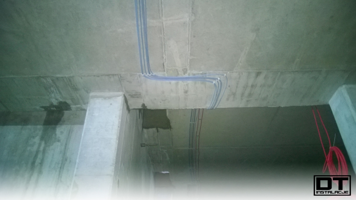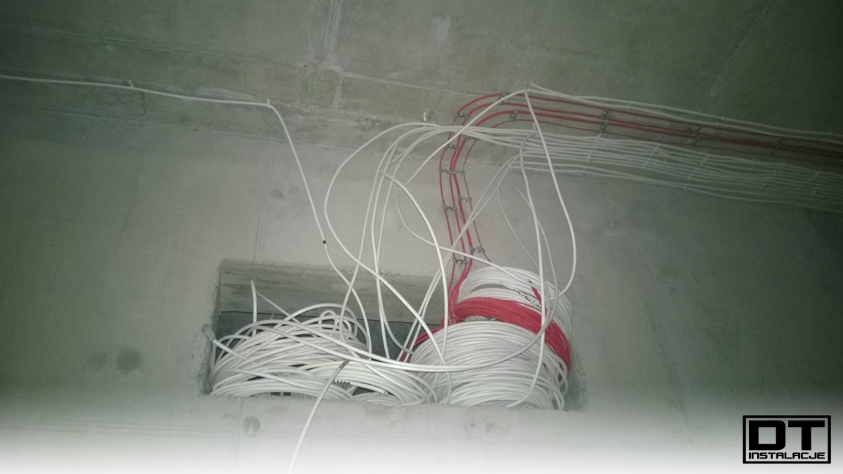 Aktualnie układamy wszystkie instalacje (BMS, instalacja elektryczna, oświetlenie, DSO oraz SSP) na stropie poziomu -1. tak, aby zdążyć przed układaniem izolacji termicznej z wełny mineralnej.